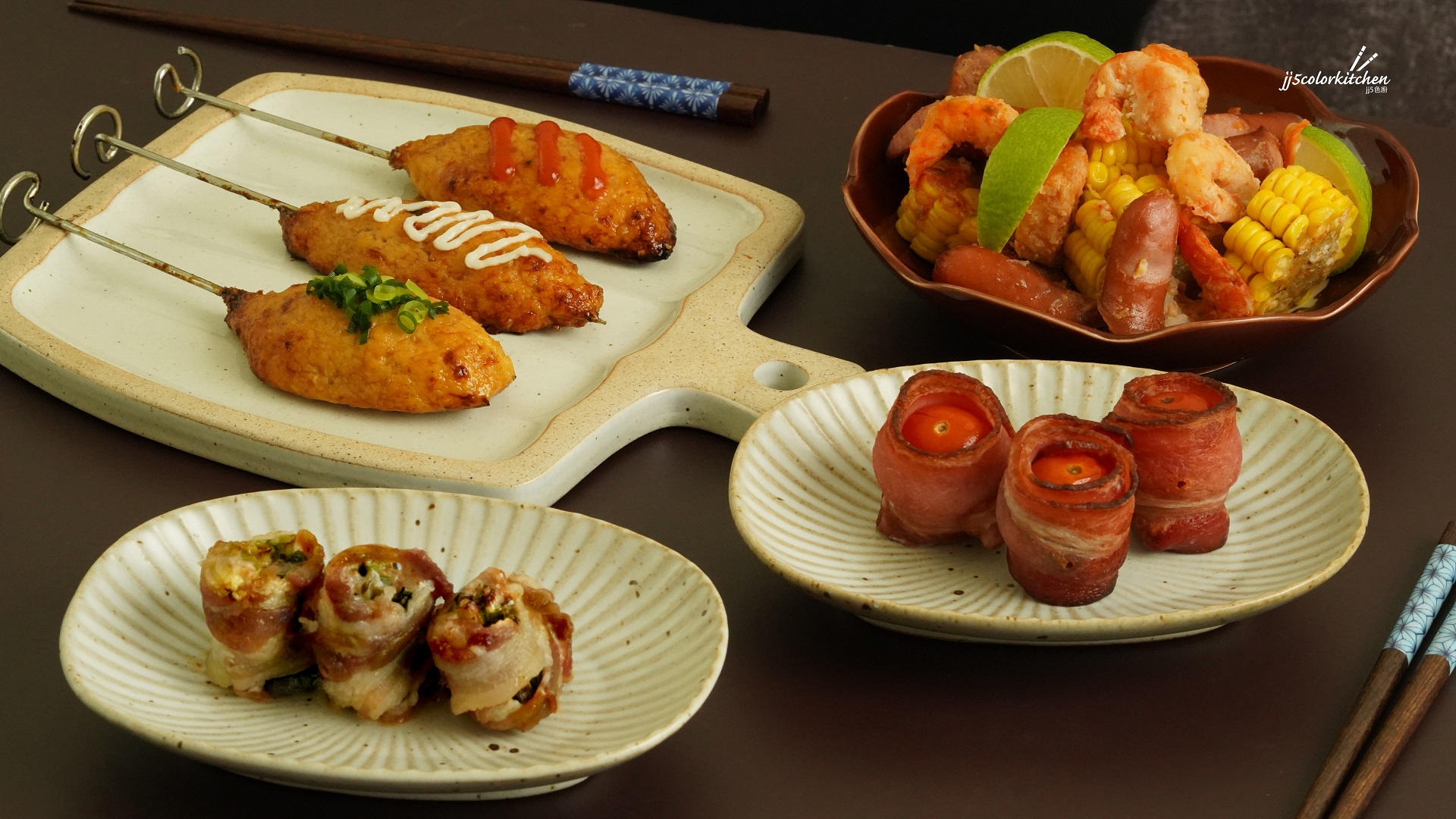 試試JJ老師的日式下酒菜吧:照燒雞肉豆腐餅︱培根番茄卷︱青蔥豬肉卷︱奶油鮮蝦香腸