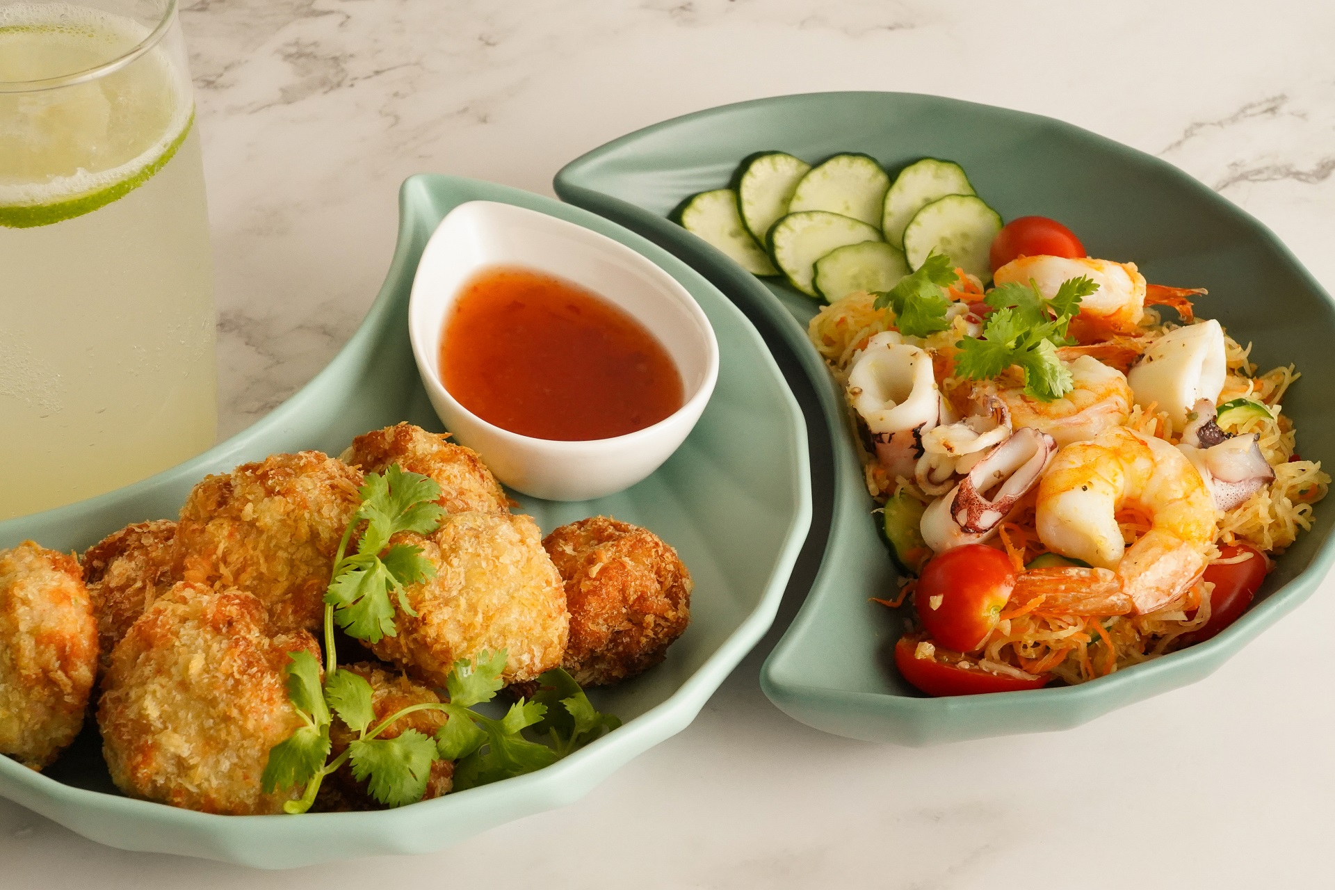 試試這個菜單:泰式香酥金錢蝦味與清爽好味的烤海鮮青木瓜沙拉!