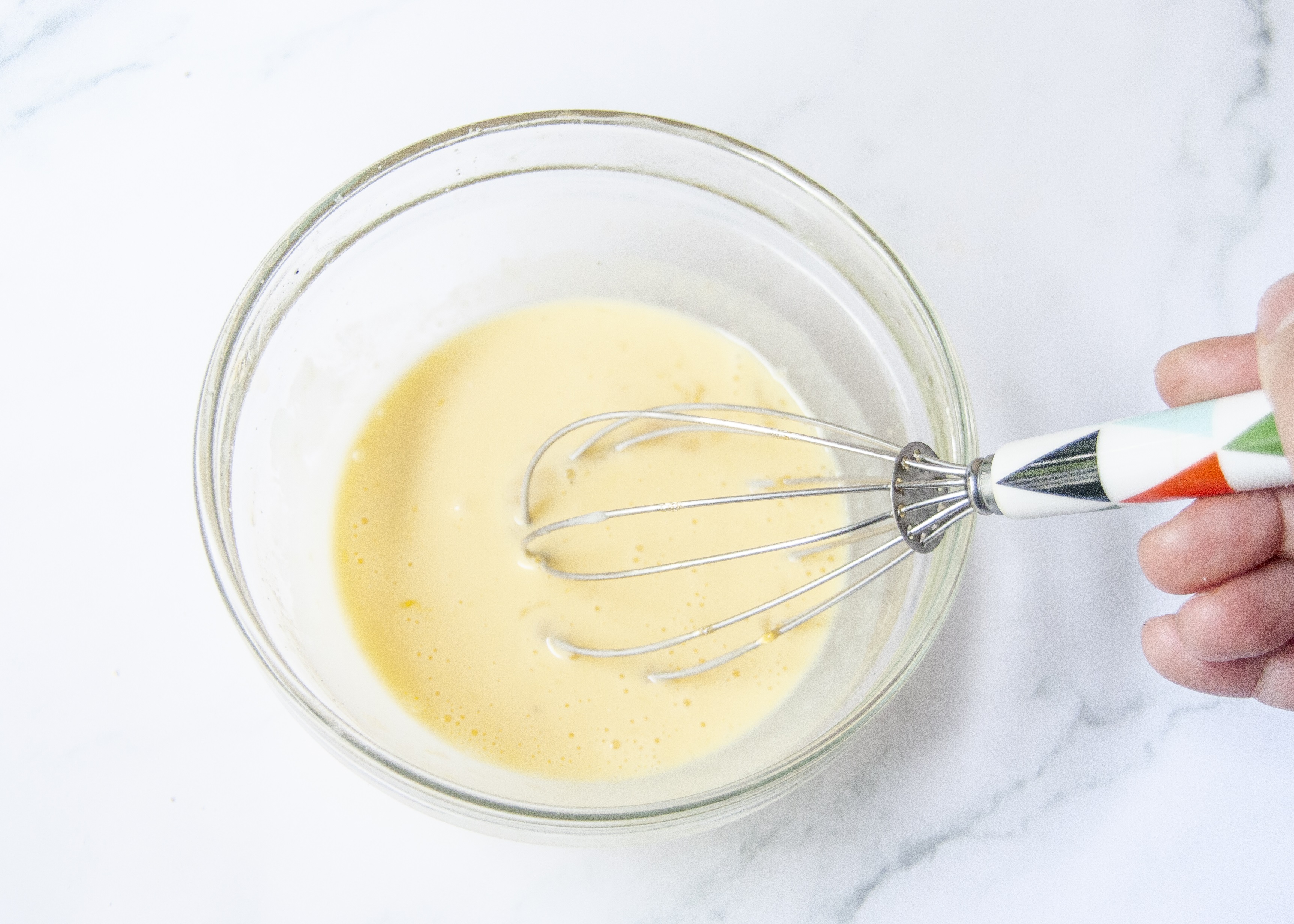 將一顆雞蛋+半包桂冠凱薩沙拉+一小茶匙的鹽巴打散混合均勻備用。